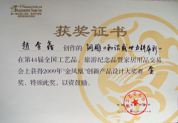 榮獲中國工藝美術(shù)"金鳳凰"創(chuàng)新產(chǎn)品設(shè)計金獎