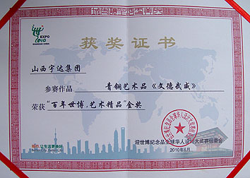 榮獲"百年世博?藝術精品"金獎