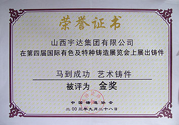 榮獲第四屆國際有色及特種鑄造展覽會金獎(jiǎng)
