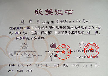 榮獲“天工藝苑?百花杯” 中國(guó)工藝美術(shù)精品獎(jiǎng)銀獎(jiǎng)
