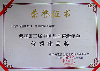 榮獲第三屆中國(guó)藝術(shù)鑄造年會(huì)優(yōu)秀作品獎(jiǎng)
