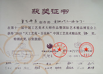 榮獲"天工藝苑?百花杯" 中國工藝美術精品獎銀獎