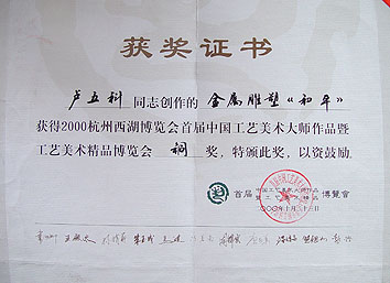 榮獲"首屆工藝美術(shù)大師作品"銅獎
