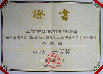 榮獲第五屆中國(guó)國(guó)際鑄造、鍛壓及工業(yè)爐展覽會(huì)一等獎(jiǎng)