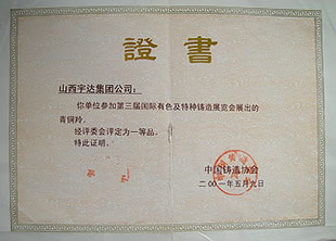 榮獲第三屆國際有色及特種鑄造展覽會(huì)一等獎(jiǎng)