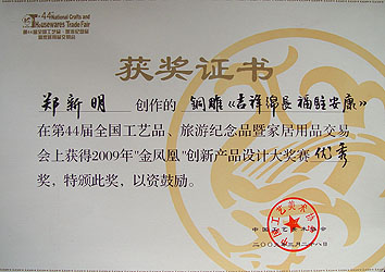 榮獲中國(guó)工藝美術(shù)"金鳳凰"創(chuàng)新產(chǎn)品設(shè)計(jì)優(yōu)秀獎(jiǎng)