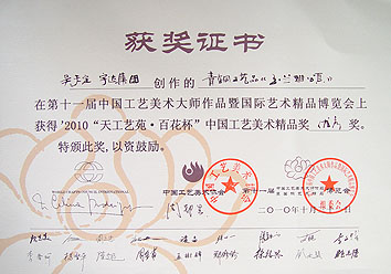 榮獲"天工藝苑?百花杯" 中國工藝美術精品獎優(yōu)秀獎