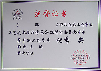 榮獲第三屆中國(guó)工藝美術(shù)精品博覽會(huì)優(yōu)秀獎(jiǎng)
