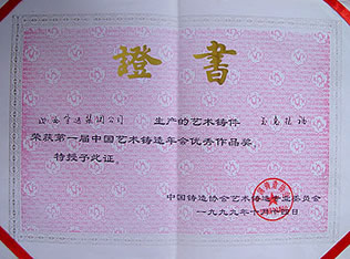 榮獲第一屆中國藝術(shù)鑄造年會優(yōu)秀作品獎