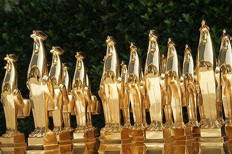 2011年10月22日晚,第28屆電影金雞獎(jiǎng)?lì)C獎(jiǎng)典禮在安徽合肥隆重舉行。由山西宇達(dá)集團(tuán)精心制作的中國(guó)電影金雞獎(jiǎng)獎(jiǎng)杯,讓獲獎(jiǎng)的最佳導(dǎo)演、最佳男、女演員等各路明星高高舉起,彰顯出無(wú)限的榮譽(yù)與光彩!