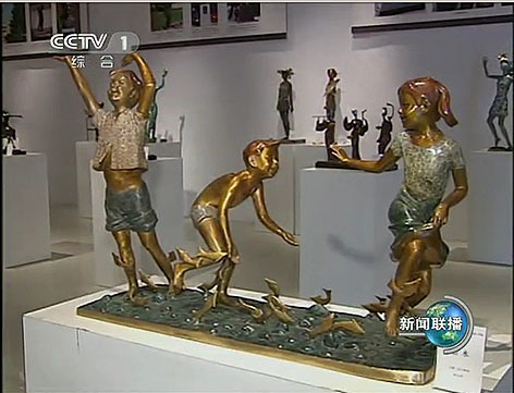(圖為中央電視臺新聞聯(lián)播截圖) 李長春同志一行在宇達青銅文化產(chǎn)業(yè)園內(nèi)的美國著名雕塑家吳信坤雕塑藝術(shù)館參觀