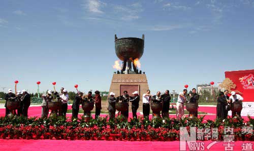 由國家文化部主辦的第十一屆亞洲文化藝術節(jié)于2009年8月18日在鄂爾多斯市盛大開幕。宇達集團承制了亞洲文化藝術節(jié)的主題紀念雕塑(亞洲文化部長圓桌會議青銅主題紀念釜)和亞洲藝術雕塑主題公園里的16件鄂爾多斯青銅器精品放大的青銅雕塑和專用禮品。 主題青銅紀念釜,高4.86米,青銅鑄造,由我國著名雕塑家、甘肅何鄂雕塑院院長何鄂依據(jù)草原特有的青銅釜創(chuàng)意設計。
