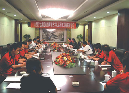 2008年7月25日-27日,旨在立足現(xiàn)代科技,傳承保護(hù)傳統(tǒng)工藝技術(shù),將優(yōu)秀的古代傳統(tǒng)工藝技術(shù)、成果借助當(dāng)代技藝應(yīng)用于山西宇達(dá)青銅藝術(shù)禮品,提升其技術(shù)、藝術(shù)、市場附加值的宇達(dá)集團(tuán)高檔青銅藝術(shù)禮品創(chuàng)新發(fā)展高峰論壇在山西省運(yùn)城市金鑫大酒店成功舉辦。來自全國各地的專家學(xué)者、工藝美術(shù)大師等9人參加了此次高峰論壇。并就宇達(dá)集團(tuán)青銅藝術(shù)禮品創(chuàng)新模式和組織模式達(dá)成初步議定。