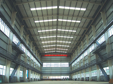 宇達(dá)大型雕塑工房地處宇達(dá)青銅文化產(chǎn)業(yè)園新區(qū)內(nèi),為鋼結(jié)構(gòu)工房。工房處于果園之內(nèi),風(fēng)景怡人。工房長(zhǎng)120米,寬22米,高21米,建筑面積2640平方米,裝備有10噸、5噸、3噸三臺(tái)行車供吊大泥和翻模卸塊使用。四周分別在高5米和10米處分布上下兩層專門觀測(cè)雕塑泥稿的走廊。除兩層透明窗戶外,專門應(yīng)雕塑家要求在工房頂部設(shè)立了透明采光帶,有效地解決了頂部光線問題。工房?jī)?nèi)設(shè)置最先進(jìn)的燈光設(shè)備,晚上工作如同白天,絲毫不受影響,另外,室外還配有五星級(jí)洗手間。