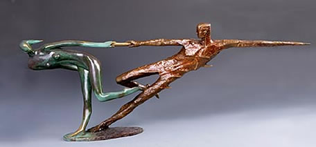 這次大賽是在北京舉行的第29屆奧運(yùn)會(huì)立項(xiàng)的一項(xiàng)重要公益文化活動(dòng)。去年8月8日正式啟動(dòng),截至今年3月1日,共收到82個(gè)國(guó)家和地區(qū)的應(yīng)征作品2433件(組)。宇達(dá)入圍的作品分別是由宇達(dá)集團(tuán)雕塑設(shè)計(jì)中心張建波創(chuàng)作的《接力》(圖1)和鄭新明創(chuàng)作的《黃河風(fēng)》(圖2)。據(jù)悉:這兩件入圍作品將參加今年6月啟動(dòng)的全國(guó)巡展。
